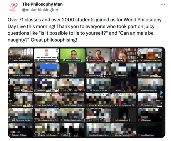 Thursday November 20th is World Philosophy Day, so why not celebrate it with a special live-lesson? We’ve done this for several years to such a success, so we’re running it again with all new questions. Everyone is welcome from age 8+.